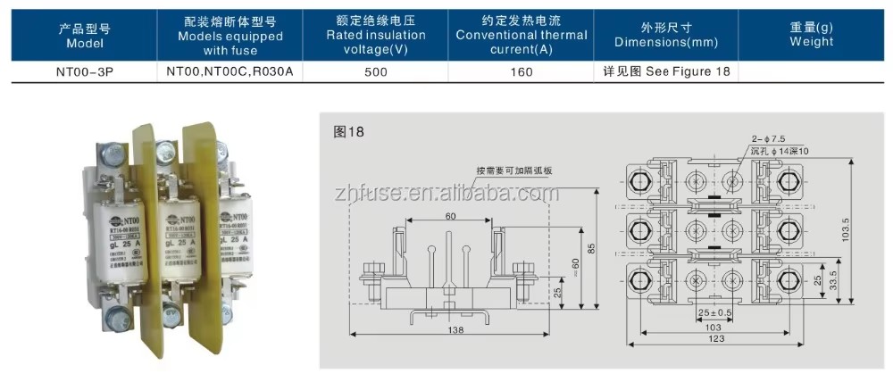 See kaitsmete seeria koosneb kaitsmeühendusest ja kaitsmehoidjast. NT00-3P kaitsmepõhine on valmistatud ülitugevast keraamilisest põrandakattest või kõrge temperatuuriga vaigupõrandast, kiilukujuliste komposiit-staatiliste kontaktidega. See on avatud struktuur, mis on hea soojuse hajumisega, kõrge mehaanilise tugevuse, usaldusväärse ühenduse ja hõlpsa tööga. NT00-3P kaitsme alus ühildub selle seeriaga ja NH kaitsmetõmbega kasutatakse kaitsme alusest eemaldamiseks. Puhtast vasest või hõbedasest lehest (või hõbedast traadist) valmistatud kaitsmeühendus on suletud ülitugevast keraamikast valmistatud sulatorus.
