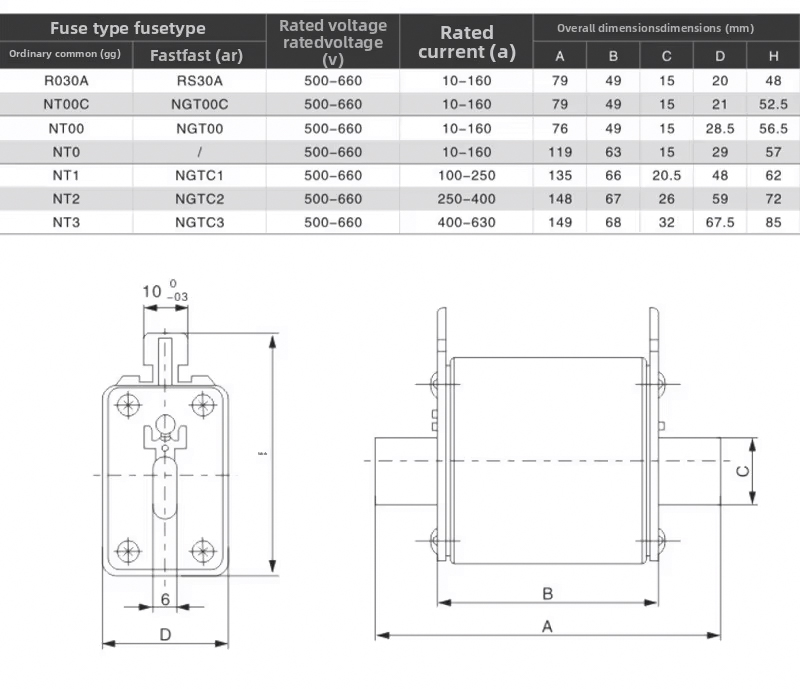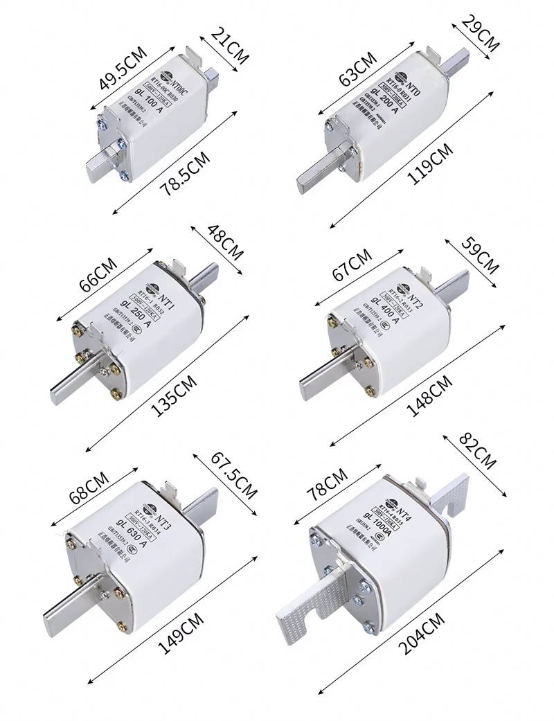 NT/NH seeria ruudukujulisi keraamilisi kaitsmeid kasutatakse tavaliselt tööstuslikes elektriseadmetes, toitesüsteemides ja elektroonikaseadmetes, et kaitsta vooluahelaid ülekoormuse ja lühiste eest.