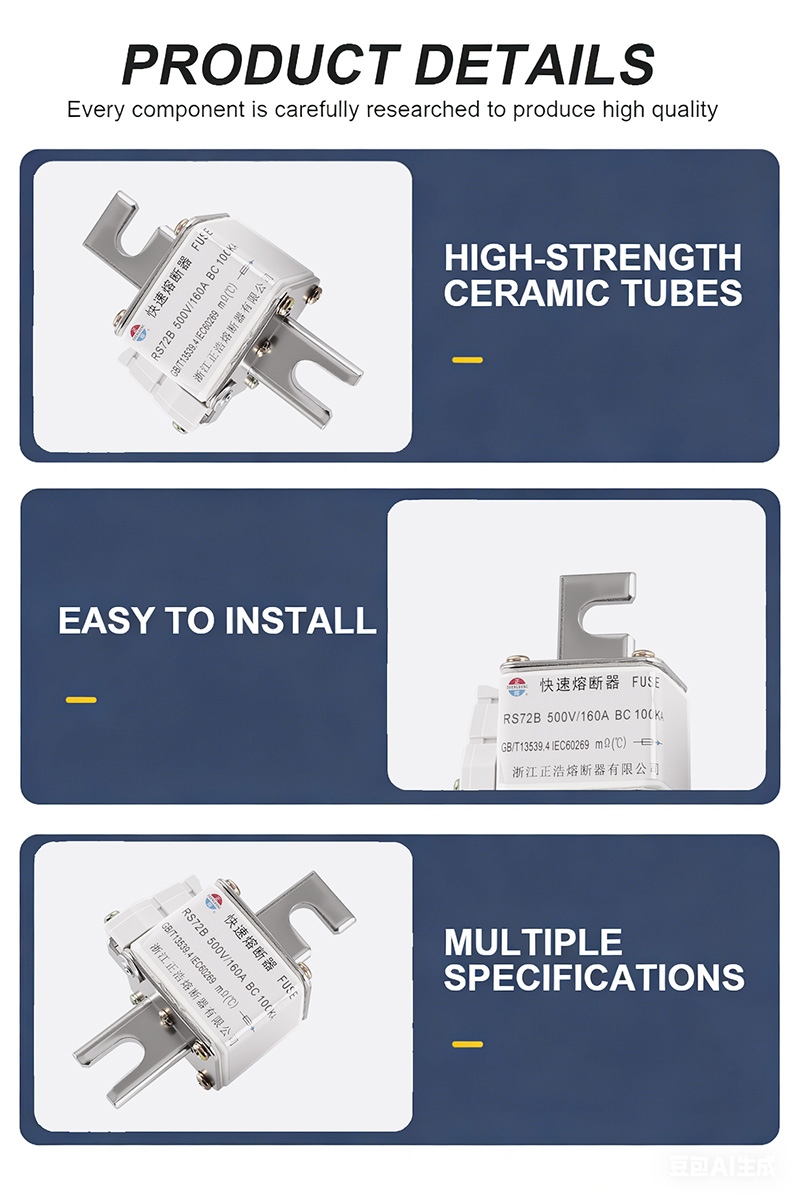 See toode sobib selliste rakenduste jaoks nagu elektrisüsteemid, jaotuskapid, trafod jne, tagades ahelate ohutu töö. RS72B 500V 160A BC 100KA kaitsmelülidel on kiire reageerimisomadus ja need võivad rikke korral kiiresti voolu katkestada, kaitstes allavoolu seadmeid. Selle nimipinge on 500 V ja nimivool 160 A, mis vastab rahvusvahelistele standarditele. Lihtne paigaldada ja hooldada, sobib erinevateks tööstuslikeks rakendusteks. RS72B 500V 160A BC 100KA Fuse Links on pälvinud paljude kasutajate tunnustuse oma stabiilse ja usaldusväärse jõudluse tõttu, mistõttu on see ideaalne valik toitesüsteemide ohutuse tagamiseks.