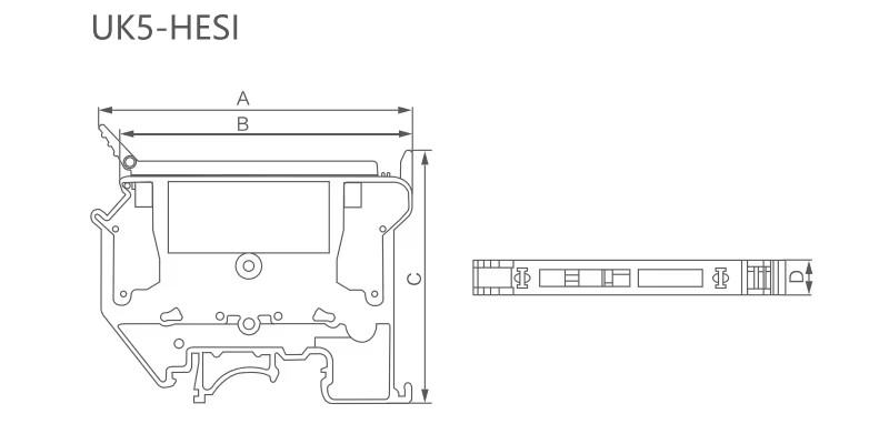 Tüüp: UK5-HESI kaitsmehoidja terminaliplokki saab kasutada erineva suuruse kaitsmiseks, näiteks 5x20, 5x25, 6x30 jne.